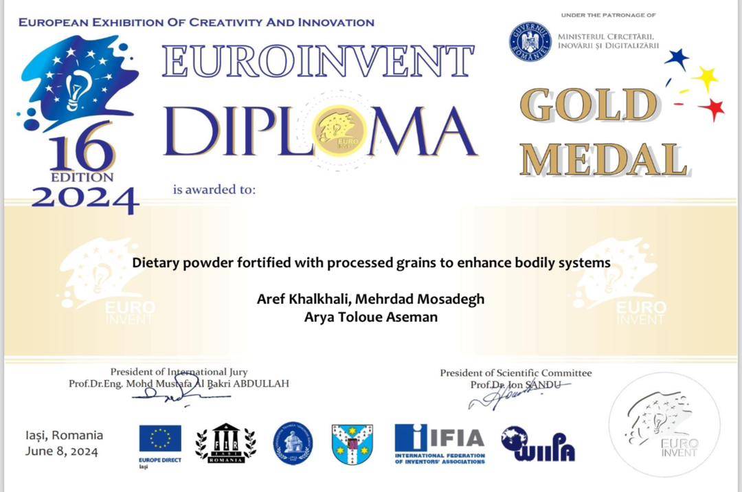 اختراع پودر غذایی تقویت‌کننده سیستم‌های بدن با فرآوری غلات” به شماره ثبت اختراع ۹۹۱۷۲، در داخل کشور و با انجام کارآزمایی‌های بالینی در بیمارستان‌های سینای همدان و امام خمینی تهران و چاپ مقالات معتبر در مجلات علمی جهان .مورد توجه مجامع معتبر علمی خارجی قرار گرفت و بیش از ۶۰ ایمیل از کنفرانس های مهم و علمی دنیا به دست این تیم رسیده است.
